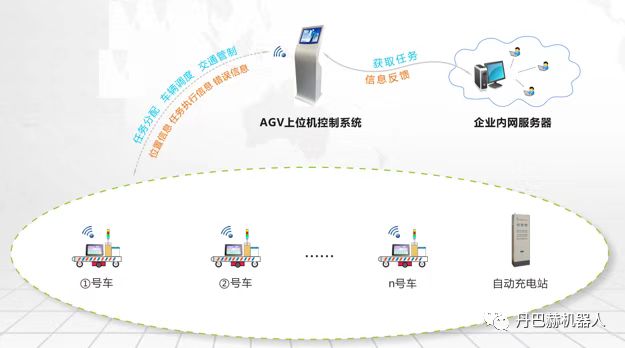 控制計算機根據ERP/MES/WMS請求信號將任務指令下達到AGV車體,實現自動化配送要求。