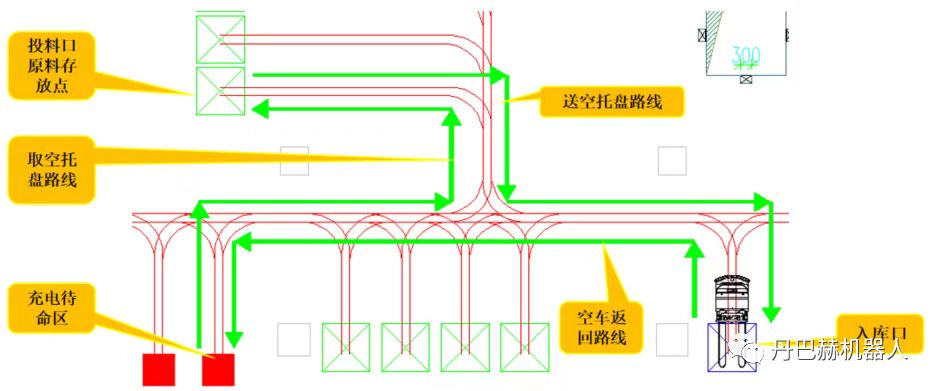 一期共10條線,每條線5個投料口,共計50個投料位;供貨方確保AGV系統后續支持擴展能力,可增加站臺,運行區域,小車數量,手持終端等,需要和MES系統對接,獲取任務指令和反饋完成信號以及每天的投料量。AGV叉車從原料取料口取料時,需要掃碼確認物料信息,避免造成誤投料,空托盤需要叉車AGV先在投料口處堆疊再統一送至入庫口。